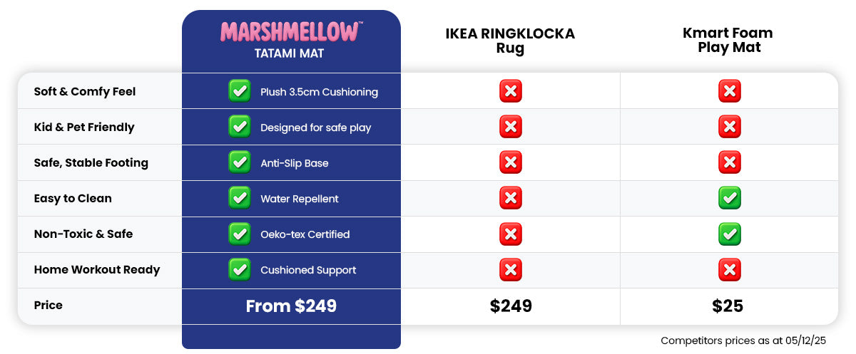 - Deep 35mm Cushioning that Beats Rugs, Carpets & Thin Play Mats: High-density foam delivers superior bounce, support, and softness compared to standard rugs, thin carpets, EVA foam tiles, and budget play mats. Perfect for high-traffic family areas needing a long-lasting floor mat.