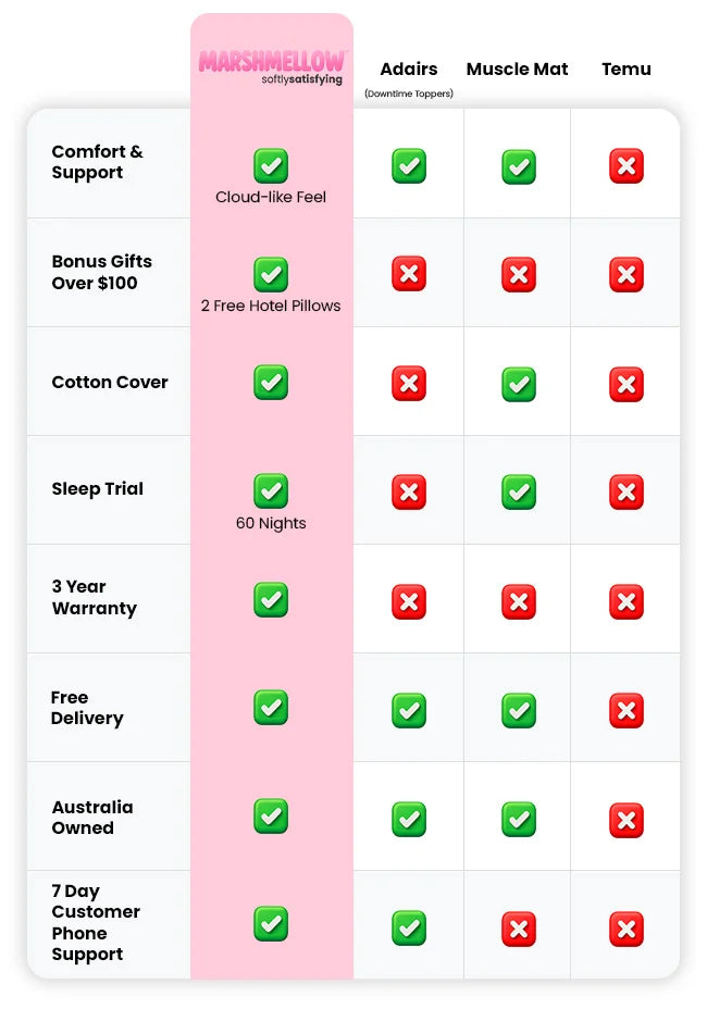 Waking up sore, restless, or just not feeling your best? The Super Sleeper Pro® Marshmellow Mattress Topper is designed to change that, instantly transforming your mattress into a plush, cloud-like haven of comfort. It cushions your body, relieves pressure where it builds up most, and supports your spine so you can finally enjoy deep, uninterrupted sleep and wake up feeling refreshed, energised, and truly comfortable.