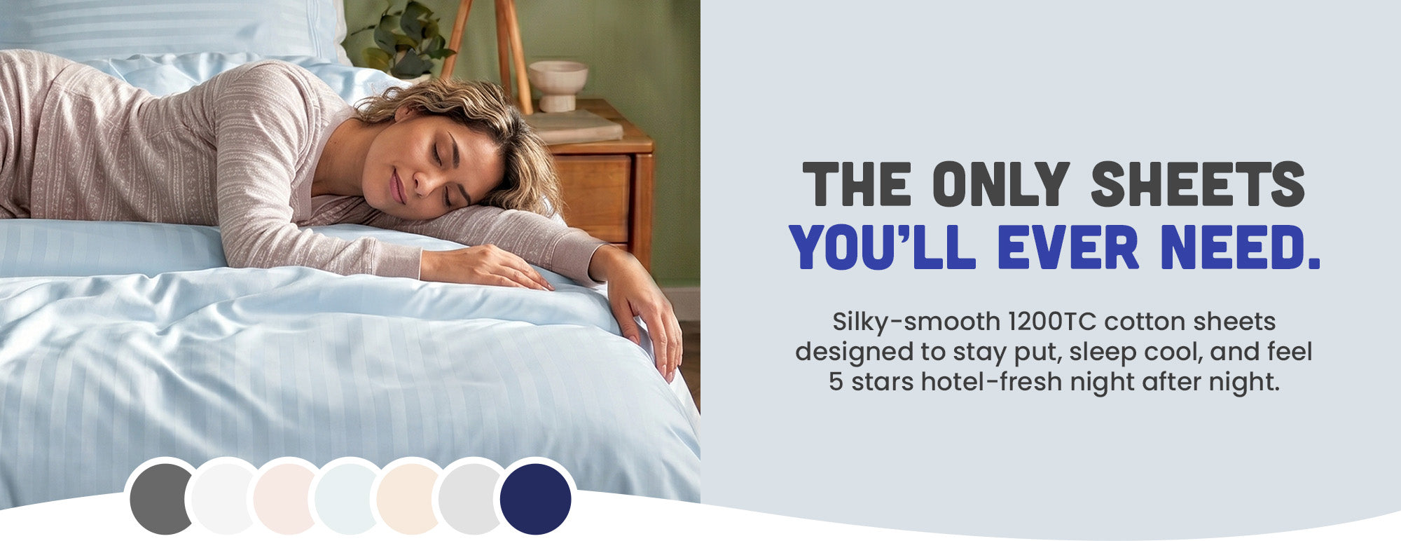 - 1200TC Cotton Sateen: Heavier, lustrous weave for natural winter warmth.