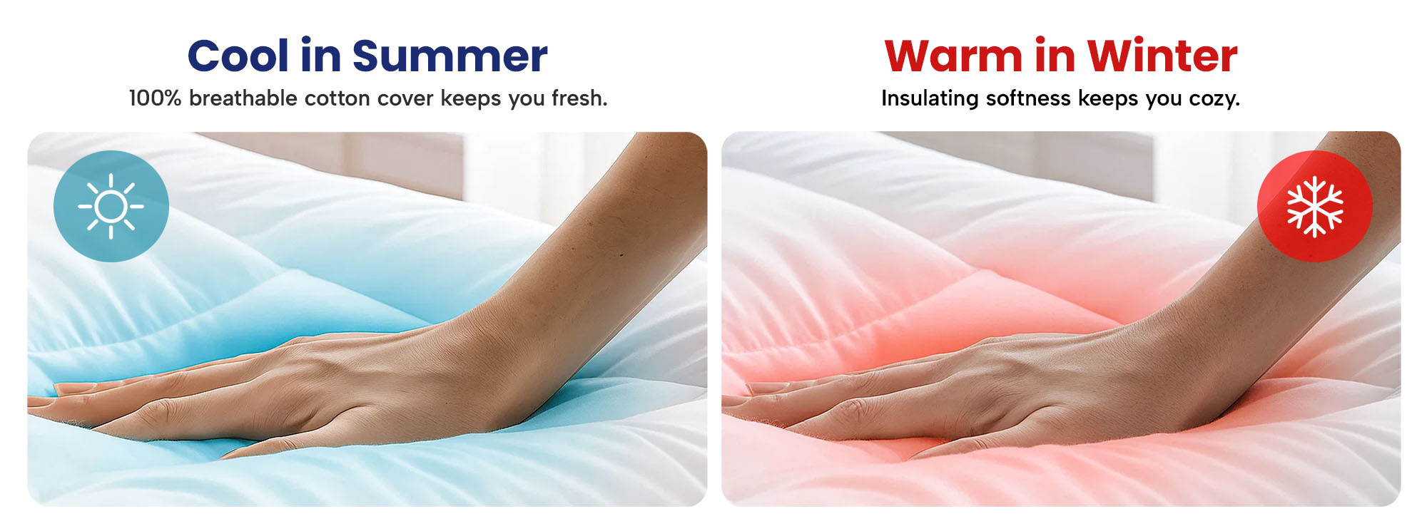 - Comfortable in Every Season: The 100% breathable cotton cover keeps you cool in summer, warm in winter, and soft against your skin all year round.